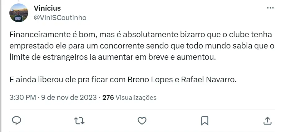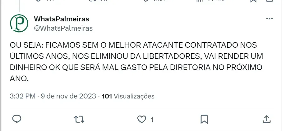 No Palmeiras desde 2020, o diretor de futebol Anderson Barros é muito criticado pela torcida palestrina pela falta de agilidade nas contratações. Nesta temporada, o Verdão trouxe apenas o volante Richard Ríos e o meia Artur.