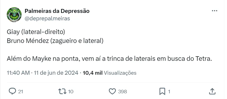 O rival paulista passa por uma crise e recentemente perdeu o patrocínio da VaideBet. A rescisão de contrato com a casa de apostas gerou repercussão na torcida palestrina.
