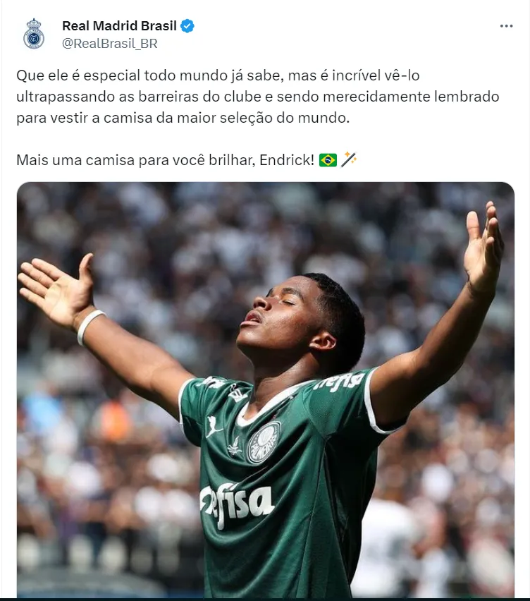 Endrick, welcome to the Seleção! 🥶🇧🇷 pic.twitter.com/2UxXPAuMdP