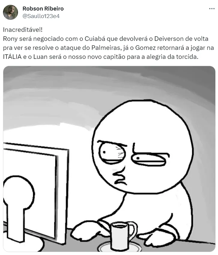 Vale destacar, porém, que o Clube não deve apostar em jogadores mais experientes. “O Palmeiras não é lugar de aposentado. Contratação é caro, então quero jogadores que podem resolver. Não vou contratar atleta aposentado em atividade. Não é nossa mentalidade, não quero. Não quero uma performance de um ano, eu quero continuidade”, declarou a presidente Leila Pereira em sua recente entrevista coletiva.