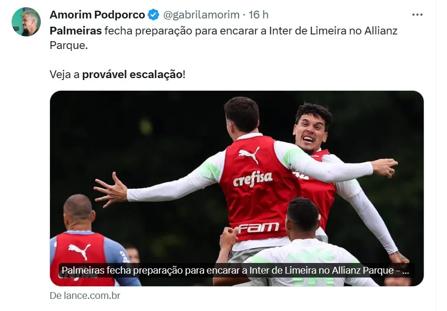 O próximo jogo do Palmeiras pelo Estadual ocorre, logo mais, às 21h35 (horário de Brasília), no Allianz Parque. Amorim apurou que Abel tirou Marcos Rocha e deve começar a partida novamente com uma linha de quatro jogadores na retaguarda.