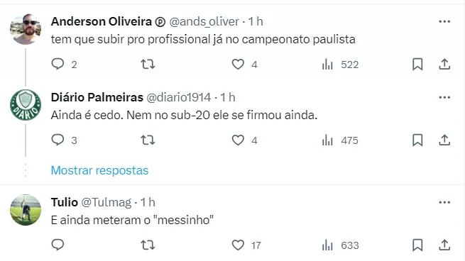 “O jogador do Palmeiras, mais conhecido como ‘Messinho’, deve ser a próxima grande estrela brasileira a jogar na Europa e se destacar depois de Endrick, convocado pela Seleção Brasileira principal”, destacou o jornal.