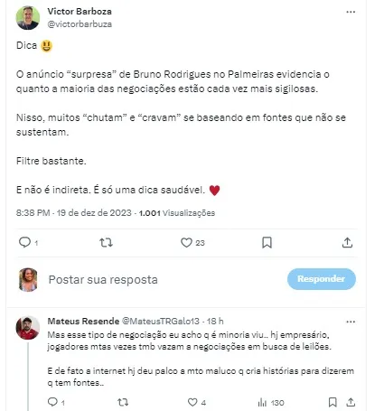 O Palmeiras anunciou mais uma contratação para 2024, Bruno Rodrigues foi anunciado pelo Verdão nesta terça-feira (19). O jogador tem 26 anos, estava no Cruzeiro e foi um dos destaques do time mineiro na luta contra o rebaixamento. Ele foi revelado pelo Athletico-PR, porém, já passou por outros clubes, inclusive, no futebol português.
