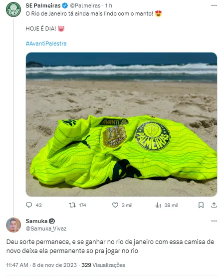 O Palmeiras entra em campo nesta quarta-feira (8) para uma decisão antecipada do Campeonato Brasileiro. O Verdão vai encarar o Flamengo no gramado do Maracanã a partir das 21h30 e o clima no Rio de Janeiro já mudou.