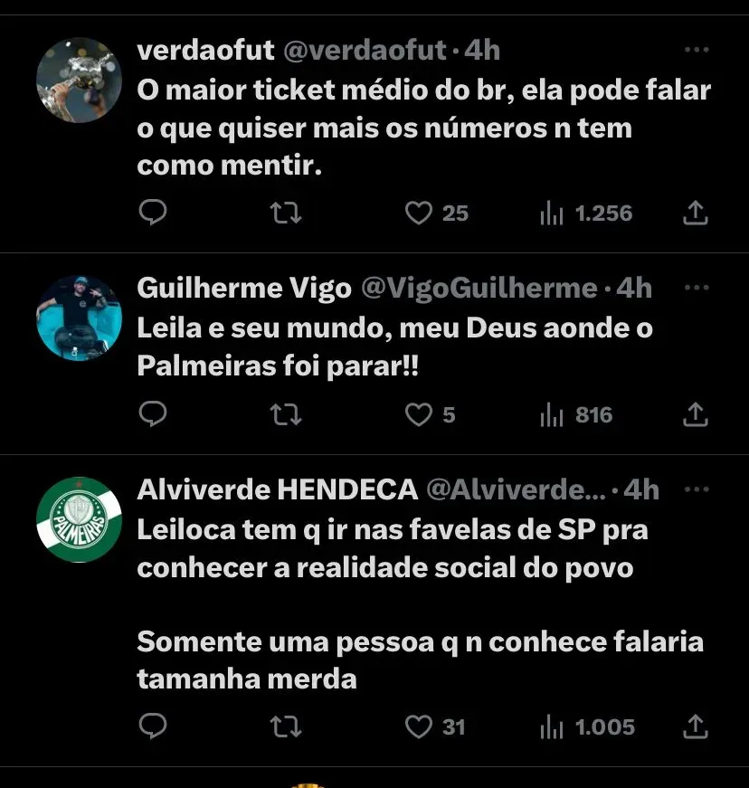 Guilherme ainda disse o que a oposição fará diante das circunstâncias no Clube: “Acho que já está refletindo há algum tempo. As promessas não cumpridas não refletiram? Cadê as grandes contratações? Temos 200 milhões de jogadores trazidos e precisamos improvisar dois laterais em uma semifinal de Libertadores. Eu entendo isso como grande reflexo. Além disso, a presidente, quando claramente diminui a história do clube e coloca suas empresas acima dele, enfraquece a instituição, e com isso entendo que perde poder de cobrança frente ao elenco, a arbitragem, federações e afins. Infelizmente, eu acho que ela ainda não entendeu o tamanho do Palmeiras”, finalizou.