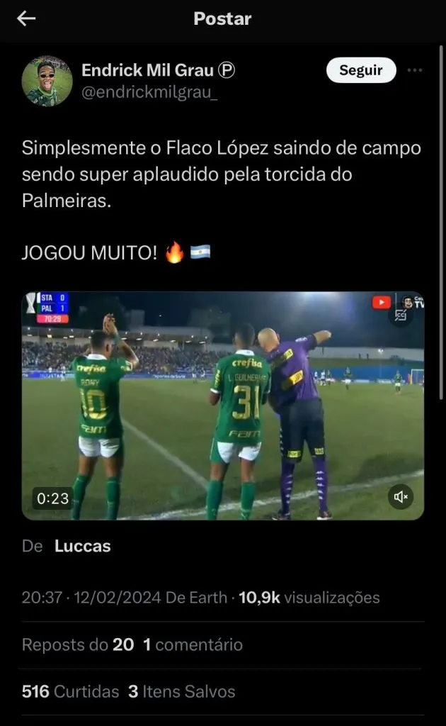 O Flaco López quase saiu do Palmeiras, o River Plate manifestou interesse, mas a diretoria e a comissão técnica do Verdão recusaram sua saída, justamente por conta dessa ausência de Endrick.