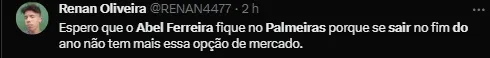 Caso Abel saia do Palmeiras, que ele encontre um time que o atenda mais que o Palmeiras, e que dê mais prestígio que o futebol brasileiro, e quem sabe, um clube que deixe ele descansar mais. Talvez, na Europa, já que o mesmo se enche para reforçar que é europeu. Quem sabe lá, ele se sinta mais acolhido e reclame menos.