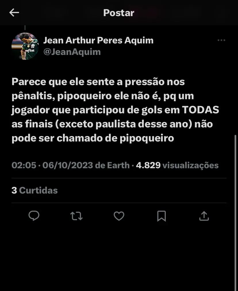 Obviamente, o atleta é um excelente batedor, isso não dá para negar, porém, apesar disso, alguns palmeirenses afirmaram que ele já perdeu batidas cruciais: (SIC) “Raphael Veiga batendo pênalti é tipo 450 pênaltis batidos, 447 gols, os três perdidos valiam a paz mundial, o fim da fome e o fim do aquecimento global”; “Parece que ele sente a pressão nos pênaltis, pipoqueiro ele não é, porque um jogador que participou de gols em TODAS as finais (exceto paulista deste ano) não pode ser chamado de pipoqueiro”, foram os comentários dos palmeirenses.