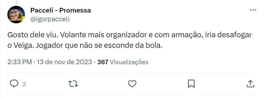 No Brasileirão, Caio Alexandre tem 29 jogos, com dois gols marcados e duas assistências. Resta saber se a diretoria palestrina vai investir nessa contratação, mas aprovação da torcida já tem.
