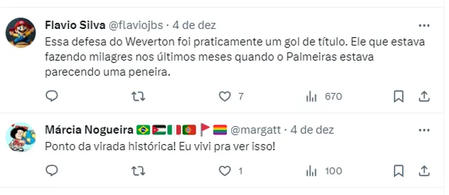 Diante deste jogo, o Palmeiras se apresentou para a competição e acreditou que poderia entrar na briga. Esse jogo, de fato foi essencial para a virada de chave do clube paulista. Não à toa, nas redes a torcida comenta sobre o jogo histórico.