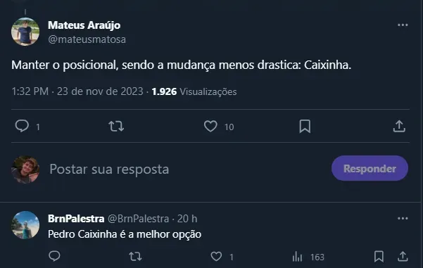 Vale ressaltar que, dentre os nomes mencionados pelos torcedores do Palmeiras para assumir o posto de Abel, Juan Pablo Vojvoda e Pedro Caixinha são os mais citados e com maior aprovação.