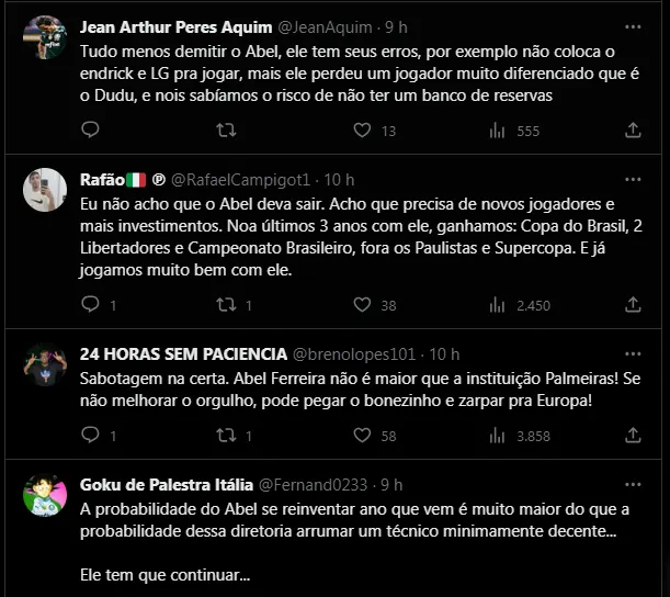 Dessa forma, a decisão foi para a marca da cal e os Xeneizes ficaram com a vaga. Dito isso, a coletiva de Abel Ferreira foi uma verdadeira “aula” de teimosia, para o bem e para o mal. Isto é, por mais que o português tenha assumido 100% da culpa pela eliminação (de forma irônica), claramente faltaram peças. Afinal, mesmo no topo do futebol sul-americano, a falta de investimento em atletas pesou. Isto é, Leila Pereira e Anderson Barros também são culpados diretos pela decepção.