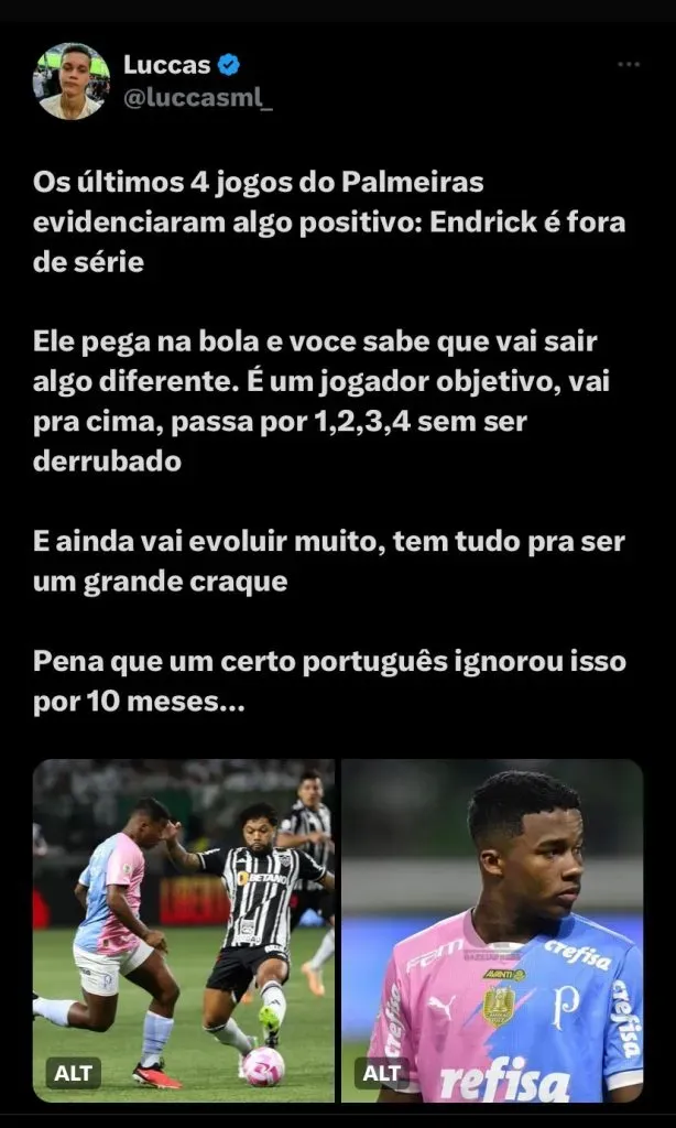 São tantos pontos, que de fato, esse não é o Palmeiras que todo mundo estava acostumado a ver, há todo um problema na temporada, desde a saída de alguns atletas, falta de contratações, as eliminações, toda a cobrança da torcida. O fato é que um time como o Palmeiras tem 11 jogos pela frente, onde Abel Ferreira terá que ‘colocar ordem na casa’ para buscar para 2024 uma vaga direta na fase de grupos da Libertadores, afinal, até outro dia, o time era colocado como um dos favoritos para ‘tomar’ o lugar do Botafogo na liderança, agora, está na 5ª colocação, com 44 pontos. Agora, o time Alviverde tenta reverter novamente a situação contra o Coritiba, no domingo (22), às 18h30, no Couto Pereira.