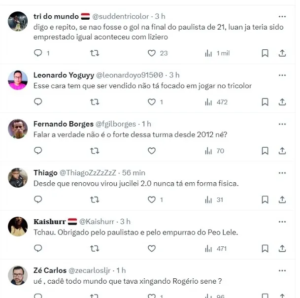 Repercussão dos torcedores sobre a situação do volante
