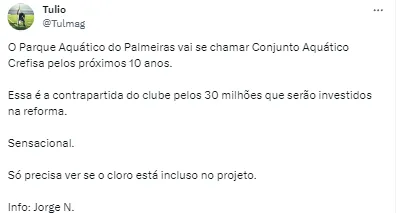 Ainda conforme Jorge Nicola, para que esse valore não vire uma dívida extra de Leila com o Palmeiras, a dirigente chegou a um acordo para que as partes envolvidas selem o negócio. A Crefisa irá ter o naming rights do parque aquático pelos próximos 10 anos.