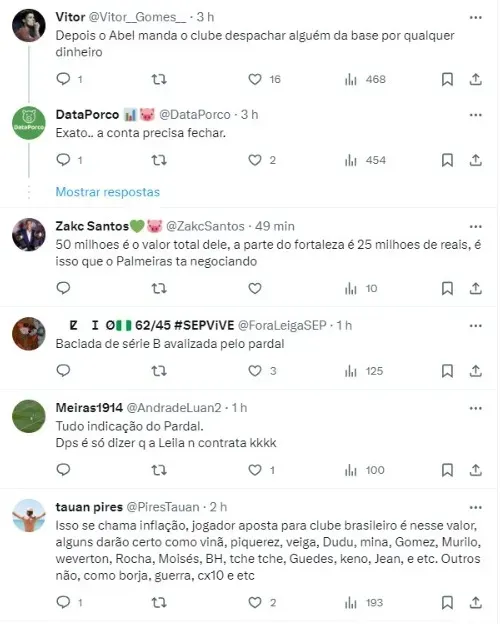 Nessa linha, um comentário feito pelo perfil DataPorco nas redes sociais viralizou, recebendo inúmeras respostas, ficando ainda mais claro que uma nova investida com valor milionário não vem sendo aprovada.