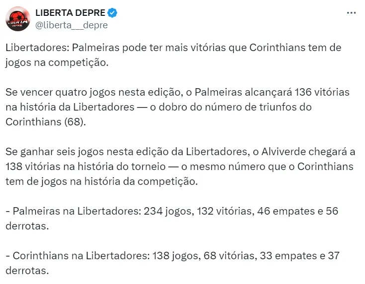 O treinador Abel Ferreira, porém, afirmou que o foco não será na estreia da equipe, que terá fortes adversários ao longo da fase de grupos da Copa Libertadores.