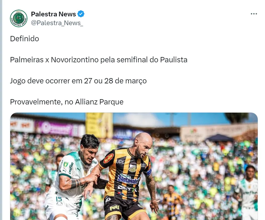 Na semifinal do Paulistão, o Clube do Palestra Itália vai enfrentar o Novorizontino, que eliminou o São Paulo. O Alviverde aproveitou a queda do rival e fez uma provocação na web ao Tricolor, que remeteu ao jogador Caio Paulista.
