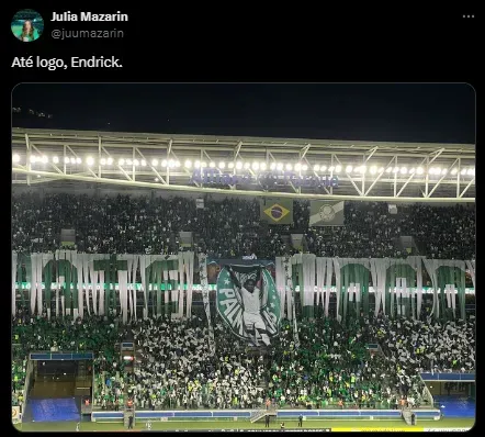 Endrick fez a sua despedida do Palmeiras. O jovem se apresentará à Seleção Brasileira para os amistosos e para a disputa da Copa América, indo para a Espanha posteriormente.
