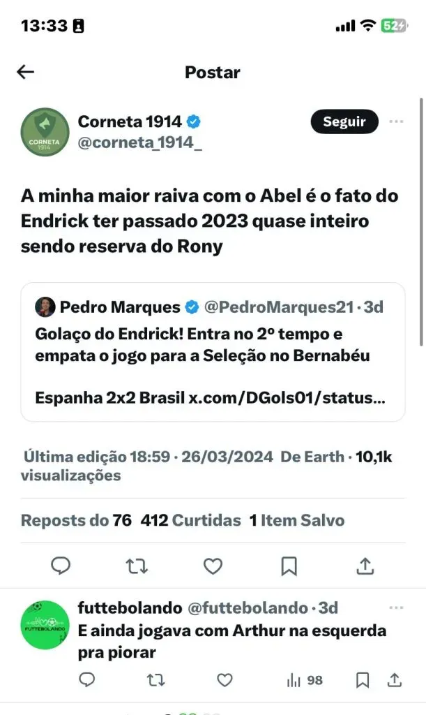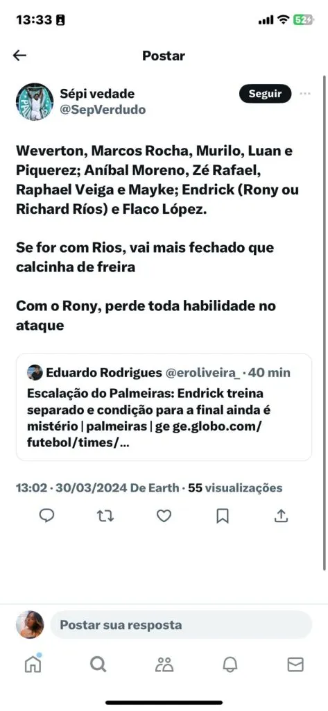 Nesta sexta-feira (29), o time se reapresentou na Academia de Futebol, Endrick participou de atividades regenerativas juntamente com os demais colegas de elenco, a expectativa ficou para o treinamento deste sábado.