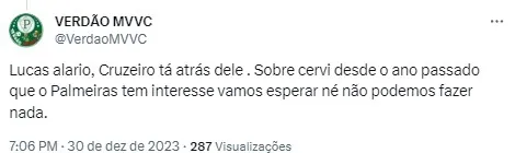 Ainda conforme PVC, a menos que aconteça uma grande reviravolta, a tendência é que os investimentos do Verdão sejam feitos em outro estilo de jogador. O perfil de Cervi não se enquadraria.