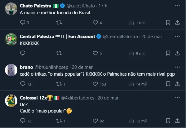 Isto é, na lista de cinco equipes com mais sócios do país, nenhum rival do estado de São Paulo chega sequer perto, mesmo com os dois outros times da capital tendo torcidas maiores. Só para se ter ideia, o São Paulo é o 9° colocado (55.058) e o Corinthians o 11° (43.000).