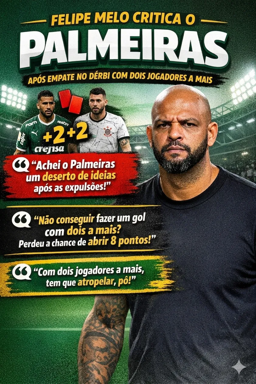“Eu até achei o palmeiras bem fez um bom jogo, principalmente quando tava com 1, 2 a mais em campo. Depois que foi expulso os caras, principalmente quando foi expulso o segundo, eu achei o Palmeiras um deserto de ideias“, iniciou.