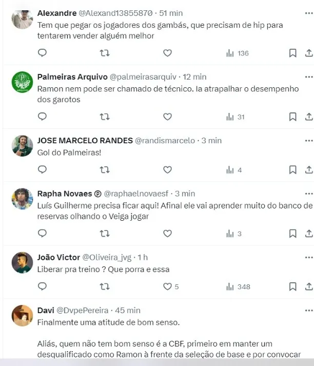 Segundo a reportagem do Ge, a comissão interna do Palmeiras não vê sentido dos atletas que já atuam na equipe profissional do Verdão participarem dos treinamentos para seleções de base.