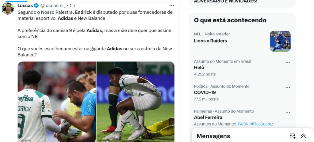 Segundo a reportagem, o staff de Endrick está preocupado, uma vez a opção pela New Balance poderia afetar na relação com o Real, já que não poderia utilizar a imagem do garoto, como o astro Jude Bellingham, por exemplo.