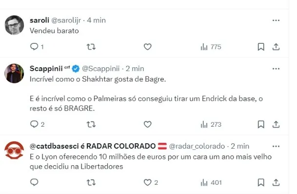 A ideia é conseguir sempre equilibrar o caixa com a venda de alguns jogadores, mas sempre nos valores que a diretoria acredita que realmente vale seus ativos ao mercado do exterior, principalmente o europeu.