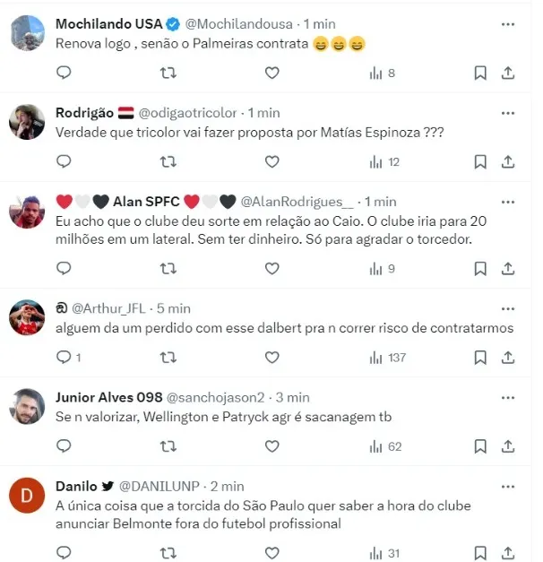 O São Paulo dava como certa a permanência do lateral Caio Paulista, porém, o Palmeiras consultou o agente Eduardo Uram, representante do atleta, e o Fluminense, com quem Caio ainda tem contrato, para saber condições de negócio.