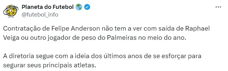 Na última segunda-feira (15), o clube anunciou o seu novo reforço: Felipe Anderson. O jogador da Lazio assinou o pré-contrato com o Palmeiras e chegará no clube na metade do ano.