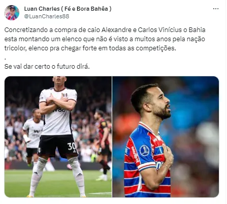 “Negociação avançada com o Bahia, fez a melhor proposta, já existe uma demanda em Stand-by para possível despedida”, relatou Bruno em publicação feita em seu perfil no X.