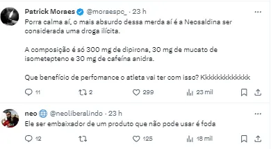 “Neosaldina e as agências que cuidam da carreira do atleta têm absoluta convicção de que essa parceria foi feita respeitando todas as regras das agências antidoping e desportivas no Brasil e no mundo”, iniciou o texto.