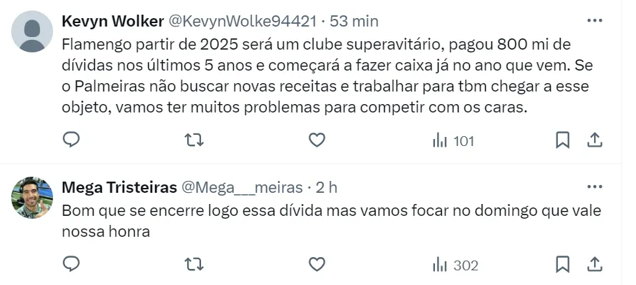 A situação financeira do Palmeiras é: