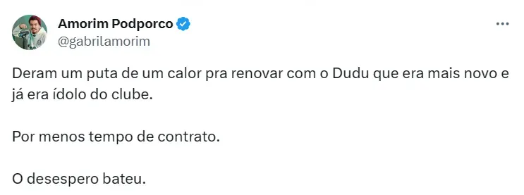 Gabriel Menino manda forte recado a torcida do Palmeiras