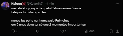 “Então, oportunidades são oportunidades. O Palmeiras não está no mercado tentando colocar o Rony no negócio”, completa o jornalista.