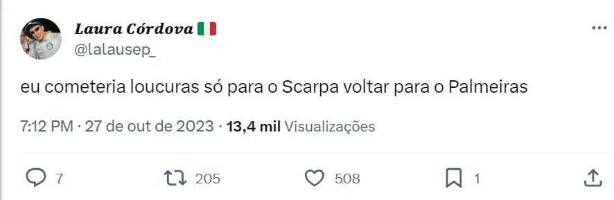 Scarpa não se adaptou no futebol europeu e vê com bons olhos um retorno ao futebol brasileiro. Porém, o Verdão descarta entrar em leilão pelo jogador, como informou o site “Palmeiras Online”.