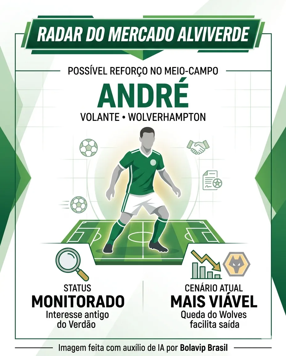 De acordo com informações do setorista Diego Firmino, da lista de alguns nomes para o meio-campo monitorados pelo Alviverde Paulista, o meio-campista André, do Wolverhampton, pode ter ficado mais fácil após o rebaixamento da equipe na Premier League.