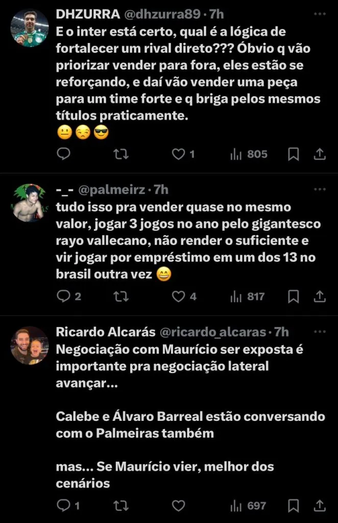 Palmeiras tem interesse na contratação do meia-atacante Mauricio, do Internacional. O jogador esteve no pré-olímpico com a Seleção Brasileira sub-23 no início da temporada e desponta como uma grande promessa do futebol brasileiro.
