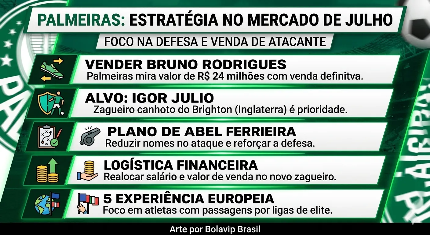 O defensor tem contrato no Brighton até o meio de 2027 e a contratação do jogador necessitaria de um investimento para conseguir a liberação dos ingleses. A chegada de um zagueiro canhoto é uma das prioridades do técnico Abel Ferreira.