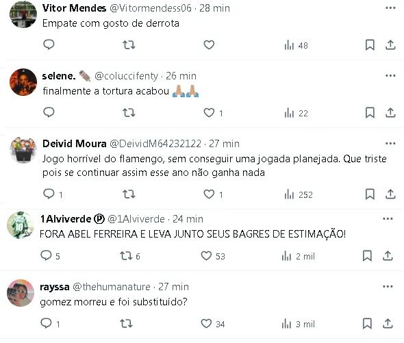 À medida que a partida se aproximava do fim, o ritmo do jogo diminuiu e as equipes pareciam resignadas com o empate iminente. No apito final, o resultado se consolidou, refletindo a igualdade no desempenho das equipes ao longo dos 90 minutos.