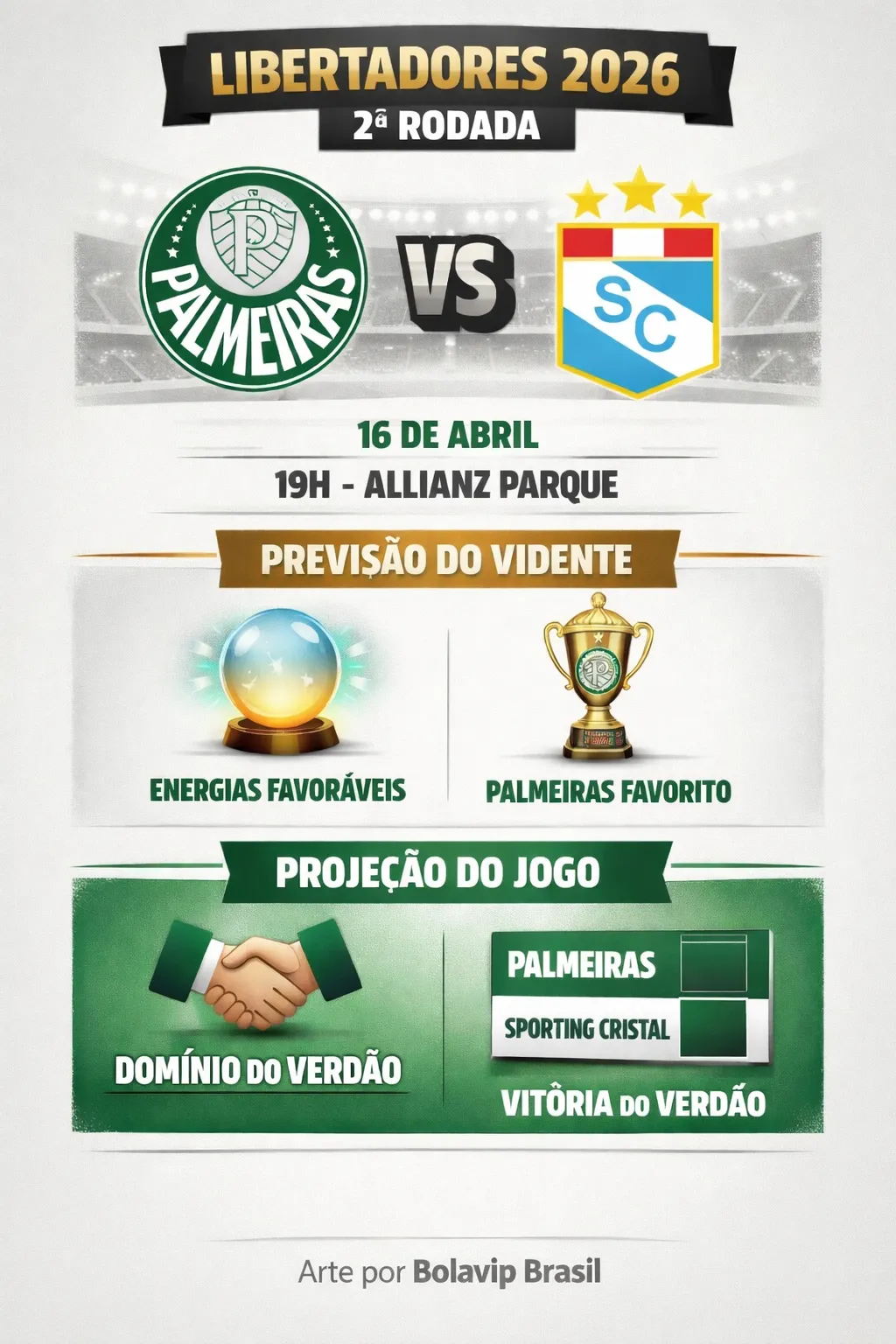 Defendendo invencibilidade de quase cinco anos em sua arena pela Libertadores, o Palmeiras deve assumir o domínio da partida dentro de casa. De acordo com o vidente, a equipe tende a criar boas oportunidades e dificultar as ações do adversário ao longo do jogo.