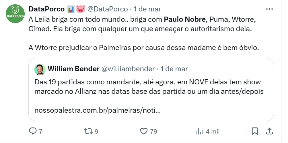 Ótima notícia para o Palmeiras, que está longe de ser a entidade pré-falimentar que Paulo Nobre colocou nos trilhos em 2015. Mas será que também é bom para Leila Pereira? 🤔… pic.twitter.com/7ypO8Tn1VF