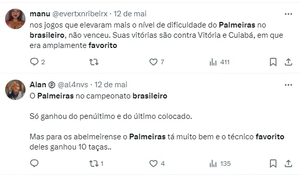 De acordo com a pesquisa realizada pela CNN/Itatiaia/Quaest, com 6.373 entrevistas entre o dia 27 de abril e 1º de maio de 2024, 19% dos entrevistados apontaram o Palestra como o favorito ao título do Brasileirão em 2024.