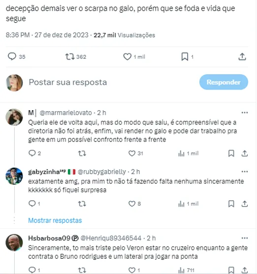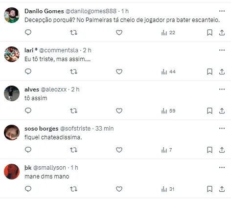 Entretanto, por outro lado, parte da torcida do Palmeiras ficou “decepcionada” com o jogador, após o acerto com o Galo. Nas redes sociais o assunto gerou bastante comentário pelos palmeirenses.