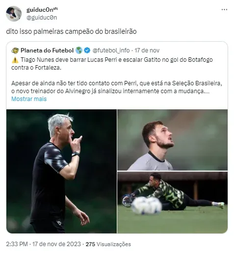 Uma outra preocupação que Marcos deve ter é sobre o 12° título nacional do Palmeiras. O Verdão pode novamente alcançar a taça do Brasileirão, basta continuar vencendo para impedir a retomada do Botafogo. Falta pouco para a temporada acabar.