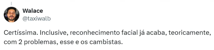 “No Allianz Parque, temos o reconhecimento facial, implementado por uma iniciativa minha, e o seu ingresso é seu rosto. Então, a partir do momento que você tem pessoas que você não quer ver no estádio, é só mandar a foto que a gente não permite sua entrada. A partir de 2025 vai ser obrigatório”, disse.