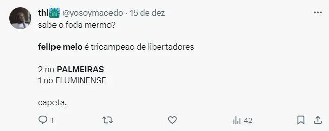 Um jogador que viveu a sensação de disputar o mundial com o Palmeiras e agora vivenciará novamente o torneio com o Fluminense, é o volante Felipe Melo.