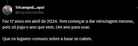 O jovem é a grande promessa do time sub-17, foi relacionado pela primeira vez na carreira. O meia-atacante de 16 anos treinou com os profissionais durante a semana, após sua participação no Mundial sub-17 com a seleção brasileira.